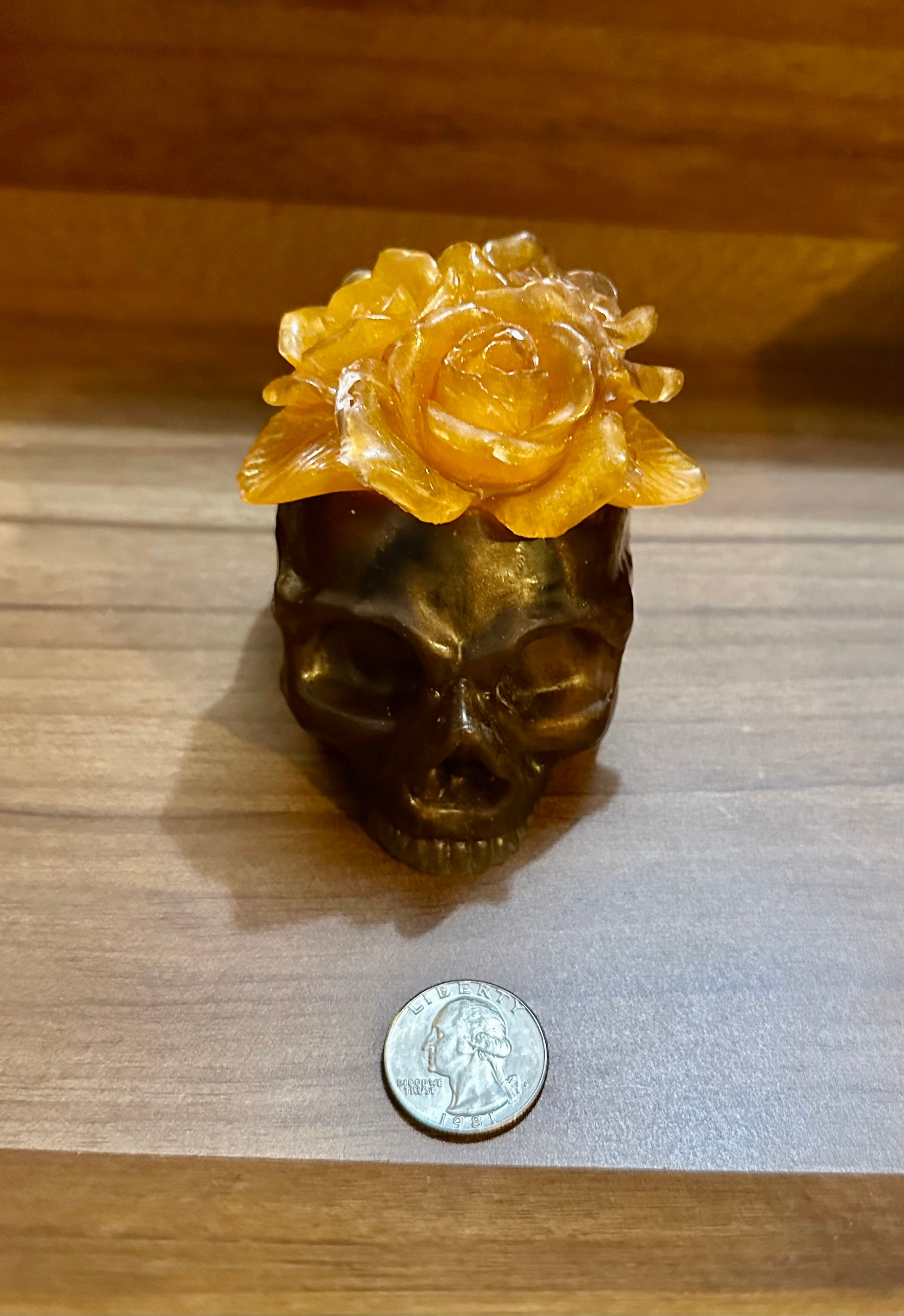 Hand Poured Resin Floral Skull- Bronze and Yellow